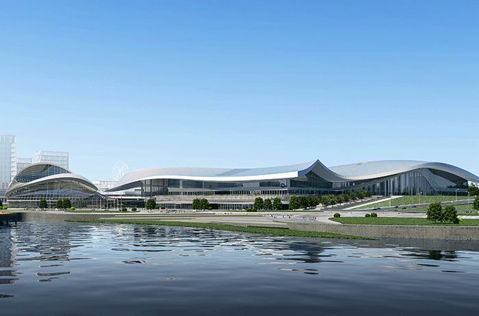 煙臺八角灣國際會展中心位于煙臺開發區八角街道,占地13.9萬平方米,建筑面積24.6萬平方米,總投資約33億元,由美國著名設計公司AECOM根據第五代會展綜合體定位設計,以“城岸云浪·海上云貝”為設計理念,將煙臺的碧?!?